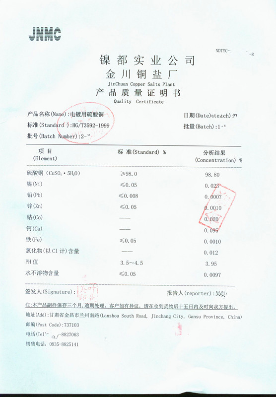 品    牌:金川電鍍級硫酸銅
