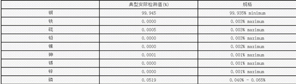 含    量:銅含量99.9%以上,磷含量0.04-0.065%